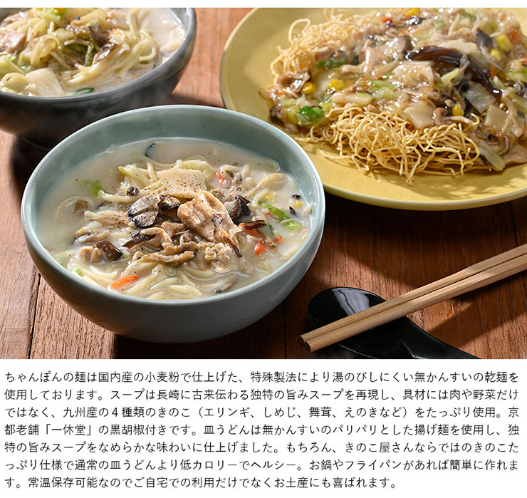 【雲仙きのこ本舗】滋味長崎ちゃんぽん・皿うどんセット エリンギ しめじ マイタケ えのき 九州 グルメ アウトドア キャンプ飯 麺 ギフト