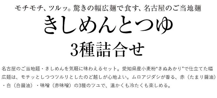 きしめんとつゆ3種詰合せ 6食入 赤つゆ 白つゆ 味噌つゆ 愛知県産 きぬあかり 名古屋 グルメ お取り寄せ 父の日 母の日 ギフト 御歳暮ギフト