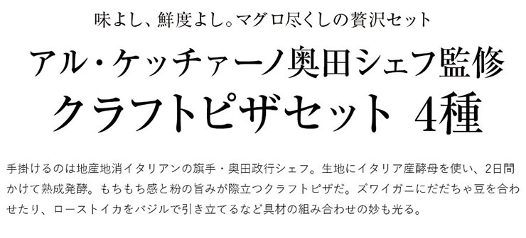 アル・ケッチァーノ奥田シェフ監修 クラフトピザセット 4種 ホームパーティ 熟成生地 冷凍 ピザ グルメ ギフト お取り寄せ 御祝 内祝 贈り物